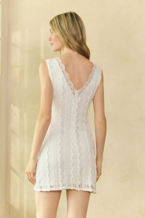 MD1946 – Lace V-Neck Mini Dress with Sheer Waist Detail