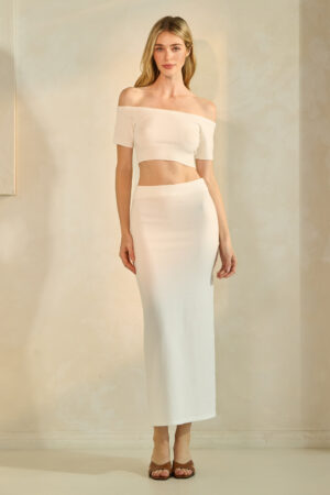MTBS1861 – Knit off shoulder top and maxi skirt set