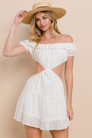 MD1002 – Off shoulder dobby spot dress