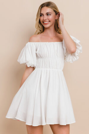 MD1029 – Puff sleeve off shoulder dress