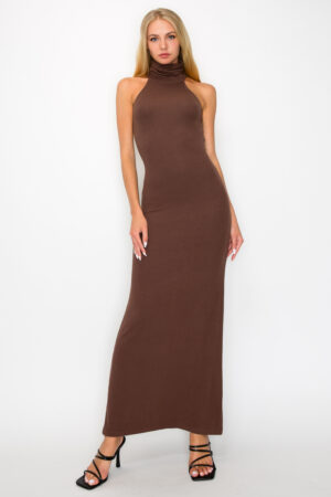 MD1225 – Ribbed turtleneck maxi dress