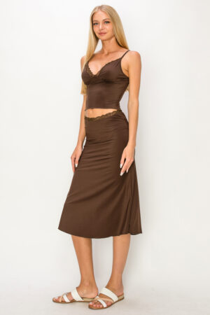 MTB1171 – Slinky fabric cami top and midi skirt set